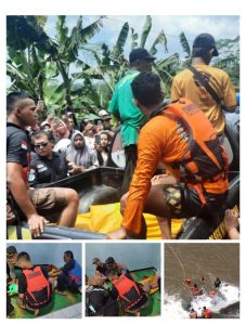 – Tim SAR Gabungan bersama warga masyarakat melakukan pencarian korban dititik korban terjatuh.